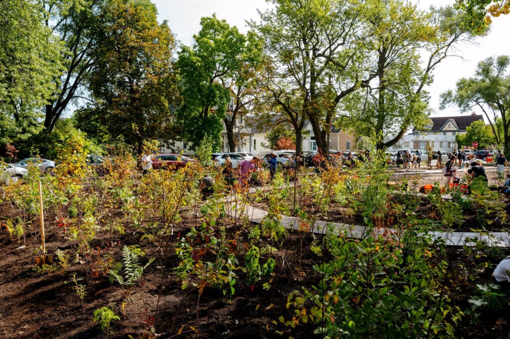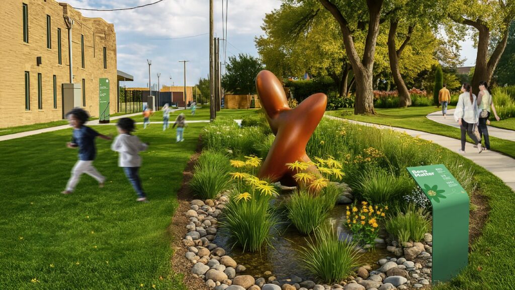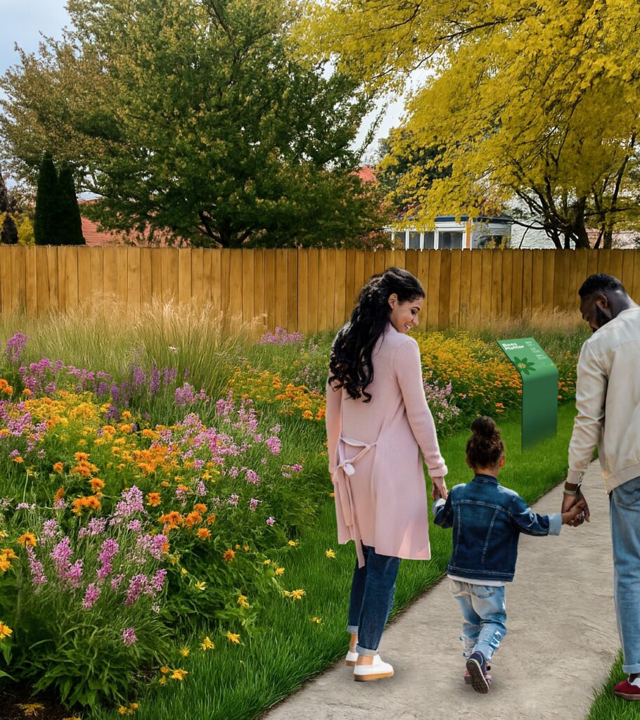 Through partnerships with organizations like U.S. Fish & Wildlife Service, Greening of Detroit, Brightside Collective, and Featherstone Garden, the grounds are becoming a model for ecological education and community-centered design. Together, we are building five native demonstration areas that will be placed along the street perimeters, sprinkled across the former alleyway, and the school entrance – each showcasing how beauty and function can coexist. A future rain garden, pollinator patches, and mini meadows will capture stormwater, attract pollinators, and teach visitors how simple design choices can heal urban ecosystems.