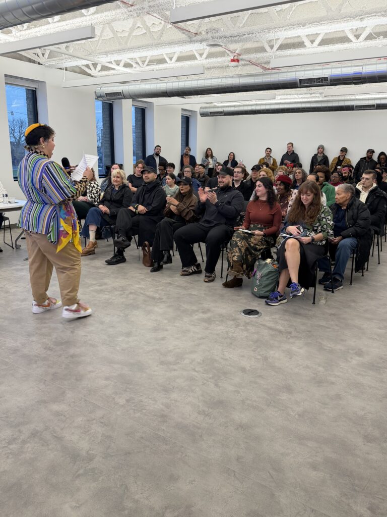 Nearly 100 people filled the space—listening, snacking, connecting, moving to great music and showing up for bold ideas. The work was imaginative and expansive and one artist will now bring their vision to life.